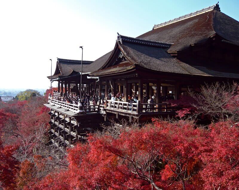 - Chùa Thanh Thủy – Kyzomizudera: một trong những ngôi đền linh thiêng nhất của xứ sở hoa anh đào với lối kiến trúc độc đáo hoàn toàn bằng gỗ, nằm trên vùng cao ngọn đồi Higashiyama. Toà nhà chính được thiết kế trông giống như 1 kho báu của quốc gia, được nâng đỡ bởi 139 chiếc cột cao 15m. Chùa Kiyomizu được UNESCO công nhận là Di sản Văn hoá năm 1994.